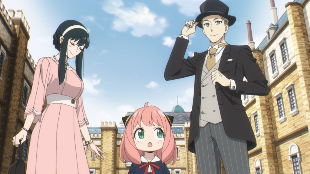 The meat of the episode comes when the Forgers finally get in for the interview and all three have to dodge assorted pitfalls in order to look good there as well. This part is also fun, even if it is more serious. One interesting point is how they actually aren’t lying that much about their family status, with the amusing point here being how the three gentlemen conducting the interview cannot possibly imagine the full truth behind the words of all three of the Forgers or the depth of meaning behind the absolute sincerity of Anya’s words about her “parents.” But then the hard pivot comes when Anya is forced into a distressing emotional reaction, and that is when the episode really shines. Despite their real reasons for being here, and despite their own personal motivations, both Loid and Yor jump to Anya’s defense as if they were real parents, even to the point of walking out (and thus effectively abandoning Loid’s mission) to avoid putting her in any more distress. They of course cannot know that that was ultimately the correct move under the circumstances, as it was the final element in winning over the elegance-obsessed gentleman, but it also serves as the episode’s great irony: for all of the other meticulous preparations Loid made, he did not prepare for that.