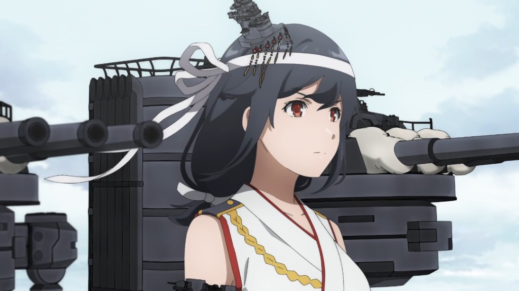 Though easily the most successful of the “ship girl” franchises to come out of the 2010s (it had an enormous presence in doujinshi markets through much of that decade), the mobile game Kantai Collection has only had two previous anime adaptations: a 12-episode 2015 TV series and a 2016 movie. This eight-episode series represents an alternate storyline rather than a continuation of either of the previous entries, and seems to be happening with an entirely different cast of characters. (A few of the original cast have background or flashback cameos, but that’s it.) Hence no familiarity with previous animation is strictly necessary to follow this this series. The first episode does, however, expect that audiences are at least generally familiar with the franchise’s operating conceits: that (mostly) teen girls called Ship Girls exist who possess the spirits of World War 2-era Japanese naval vessels. That allows them to glide across the water and use equipment and weaponry in line with their source ships to fight the Abyssal Fleet, an alien presence from the deep seas which threatens humanity’s presence on the seas. And this Abyssal Fleet is, of course, based on the American and Australian fleets that Japan fought against in WW2.
