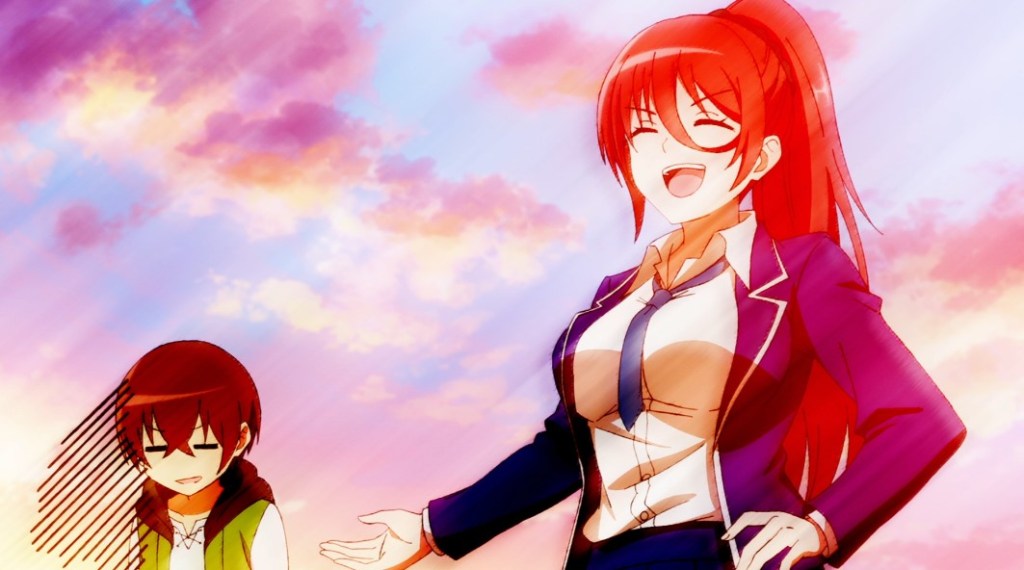High schooler Asahi is following a seemingly-typical isekai route: he gets hit by a truck, winds up in a fantasy world, and becomes an adventurer. (The slight twist here is that he’s actually comatose, not dead, so this is a John Carter-type situation.) The probably is that he has no special abilities. But he does have a doting big sister, and when she also appears in the fantasy world, she’s insanely powerful. But everyone thinks that he, and not his sister, is the one that’s powerful, and he lamely tries to cover that up rather than ‘fess up about it. Future problems await, especially since his sister’s Little Brother Complex is kicking into overdrive.