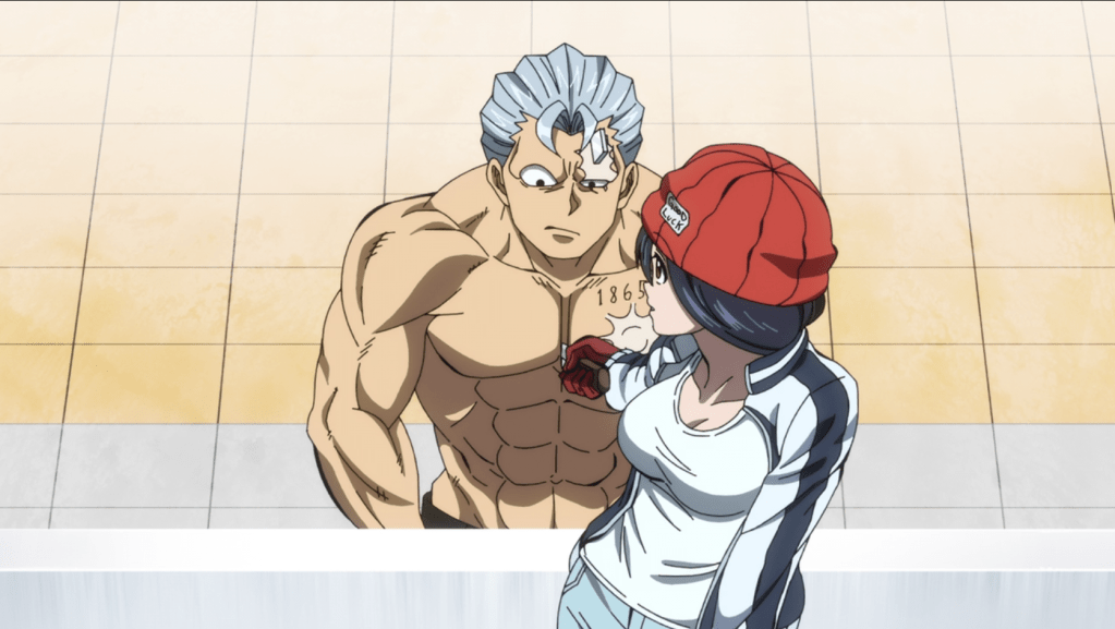 You have an undead guy who literally can’t be more than briefly killed by anything and is looking for a way to die. You have a young woman who is planning to commit suicide because of her peculiar condition: anyone who makes skin-to-skin contact with her gets fatally unlucky. Perfect combination, right? Oh, and the undead guy can also jet himself forward on severed limbs by controlling the way his regeneration works. Yes, that’s every bit as eye-poppingly insane in execution as it sounds, and that’s not even close to the full extend of what goes down here. Really, I watched much of this episode with my jaw on the floor.