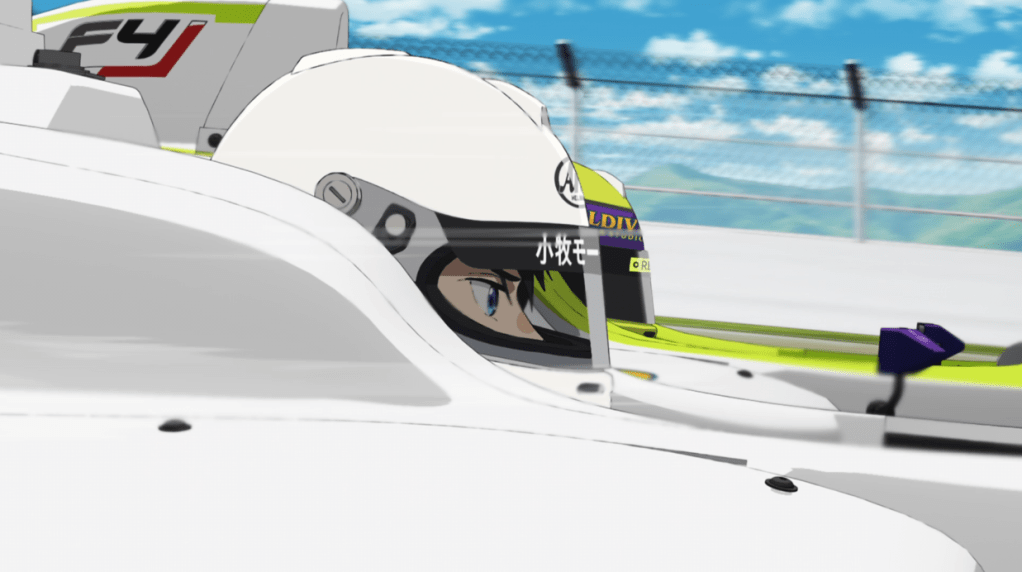Really, literally everything the first episode does is anywhere from a little to a lot better than MF Ghost. Koya has a much more compelling backstory, with suggestions that a past tragedy involving filming has left him reluctant to photograph people, while the way Karuka brusquely insists that he doesn’t even need applause to support him suggests that he has his own issues. The character design work and animation is also far better, and so it the commitment to showing some actual racing. F4 is not that much different from Indy Car races (which I am somewhat familiar with) in the way the cars look and work, and the racing sequence towards the end of the episode beautifully captures the energy and intensity of those racing moves without being needlessly dramatic.