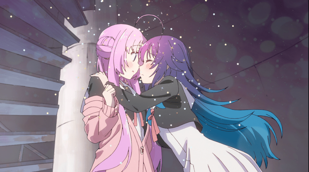 This is a sweet little series which could easily be interpreted as having yuri undertones, though I don’t get the impression that is the primary intent. It’s much more of a “finding someone I can connect with” kind of story, one with a distinct mystery element: is Yu really an alien, or just a human girl who has, perhaps, created her own alien fantasy to cope with her own problems? That is very carefully left ambiguous at the end of the episode, as all of Yu’s odd circumstances (living in an abandoned lighthouse, not remembering her alien life before appearing in her current form) could be explained in conventional terms; even her “foreheadpathy” could just be advanced intuition. Regardless, seeing Umika start to bond with Yu promotes all kind of warm fuzzies, which the soft artistry and background music capably support. The OP and ED indicate that this will eventually be a quartet, but it’s starting from a solid foundation with this duo.