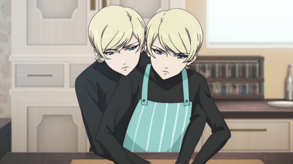 That’s the entire premise of what is easily the most bizarre series concept to come up so far this season. The whole episode is about how slickly Migi and Dali trade places, work together, and study their new parents to utterly ingratiate themselves to the old couple, sometimes resorting to acrobatic-level feats to pull the stunts off. A wonderfully creepy musical score gives the whole thing a certain flair, and viewers also have to always watch carefully for where the second twin might be hiding to listen in/await his opportunity. (The name choice they use for their apparent singular identity is also significant, as “Hitori” means “alone.”) Be sure to watch for the post-credits scene, which shows how thoroughly they scheme. Though a neat concept, I have to wonder how far the gimmick can actually carry the series.