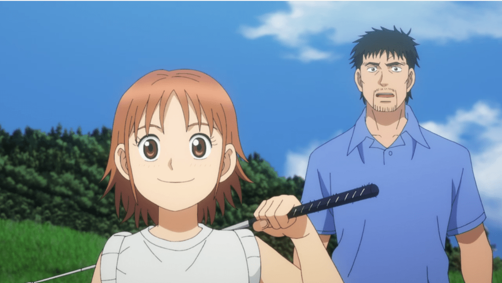 The series, which adapts a long-running golf manga (it has a whopping 49 volumes in Japan), features an ex-pro golfer who, it’s implied, has come to the Tokara Islands in Kagoshima Prefecture (southwest of Kyushu) in order to get away from things. There, in such a remote place, he’s shocked to discover an island-made links course and a precocious girl, Tonbo, who seems to have unusual talent with a golf club. Since Tonbo is both an orphan and the only middle school-aged student on the island, presumably she and the ex-golfer will bond over golf.