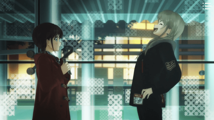 This episode is a direct follow-up to the events of season 2, so no familiarity is necessary with the two franchise entries which have come out since then (i.e., the movie Scarlet Bond and the short ONA series Visions of Coleus). However, since 2½ years have elapsed since the last series ended, either reviewing season 2 first or watching the recap episode 48.5 first is strongly recommended if you haven’t watched/rewatched s2 recently. This episode directly continues from the end of episode 48 and assumes complete familiarity.