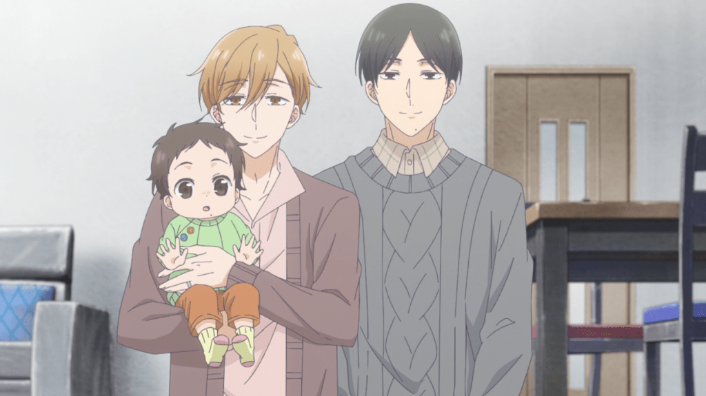 The first episode of this manga adaptation unequivocally proves one thing: a charming, cutesy slice-of-life show about a loving gay couple can be ever bit as bland and boring as a charming, cutesy slice-of-life show about a hetero couple. To be sure, it has plenty of charm and cutesiness working for it, but if that and the tender relationship between the male leads doesn’t have you going gaga then there’s little else here to hold interest.