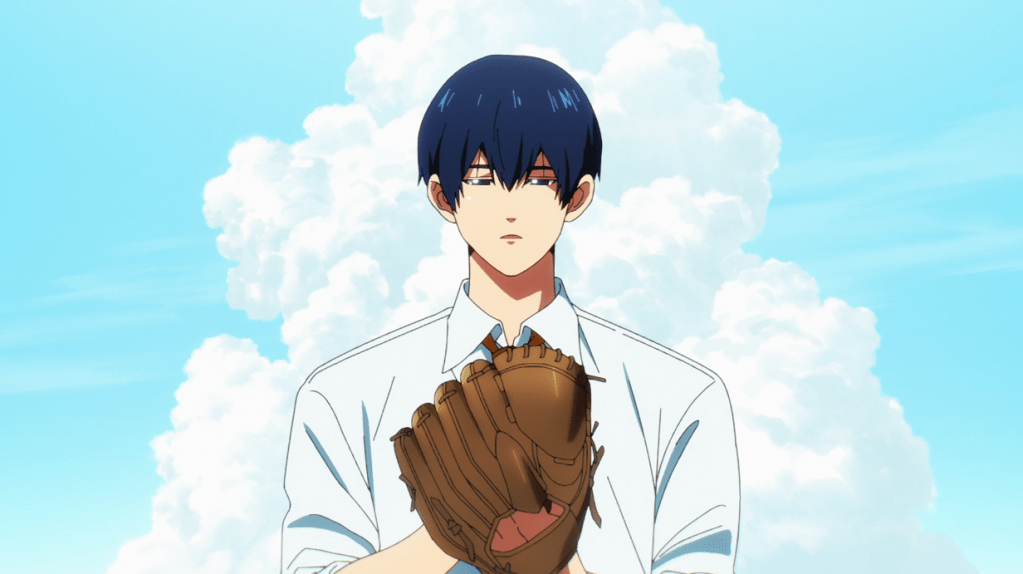 This new baseball series, which adapts a shonen manga, stands out for two reasons, one of which isn’t a good one: it pulls the interesting trick of being about an ace pitcher-catcher combo (hence the “battery” part of the name) but told from the viewpoint of another character, and it has easily the most obnoxious character introduced to date this season, in (former and possibly future) catcher Kei. The gimmick, you see, is that Kei was actually always a screwball, and leaving behind baseball and its disciplined mindset caused him to revert to his worst base tendencies. The reason why that matters is because Kei was apparently in a serious accident that left him with amnesia, and thus no memory of his baseball play with Haruka, a tall, lanky pitcher with such dominating power that only Kei can catch for him at full strength.