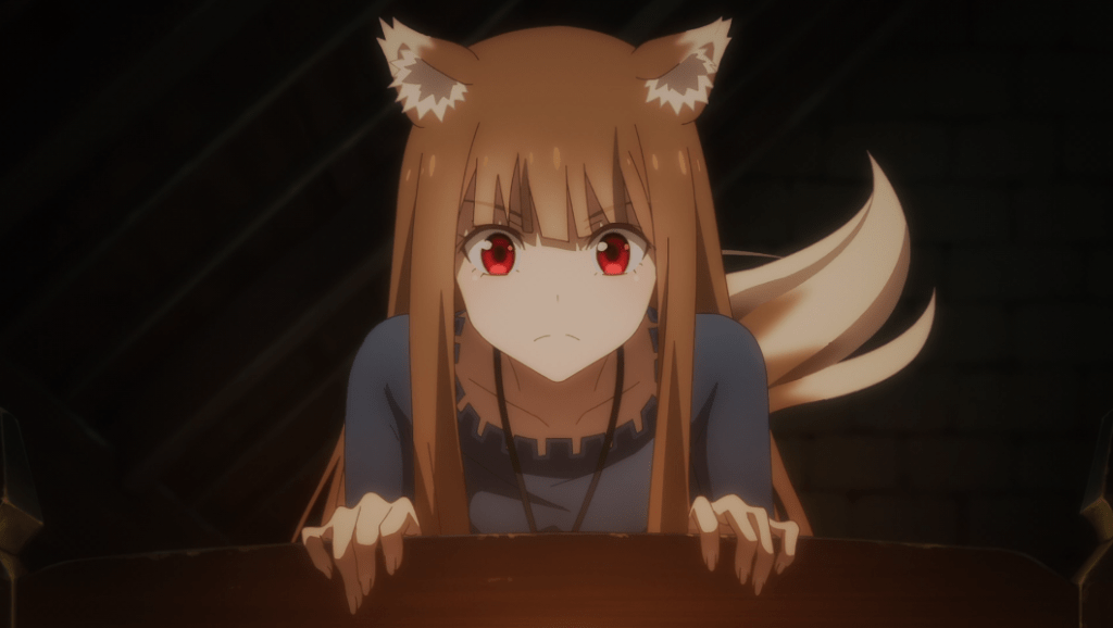 This week the English simuldub begins, lagging two weeks behind. Brina Palencia and J. Michael Tatum are back reprising their roles from the dub of the first series, and all’s right with the world. While they had an unenviably tough act to follow in voicing the two protagonists, their performances are widely-regarded in the West as being as iconic as the originals, and the dub of episode 1 shows why. Ami’s performance of Holo conveys her energy and slyness a bit better, but Brina’s performance give the character a more pronounced haughtiness which fits just as well, and you can’t go wrong with either take on Lawrence. Of course, this is to be expected, since Brina and Michael have been voicing the audiobooks for the original novels over the last couple of years, but I know I’m far from the only long-time franchise fan who breathed a sigh of relief at the recent cast announcements.
