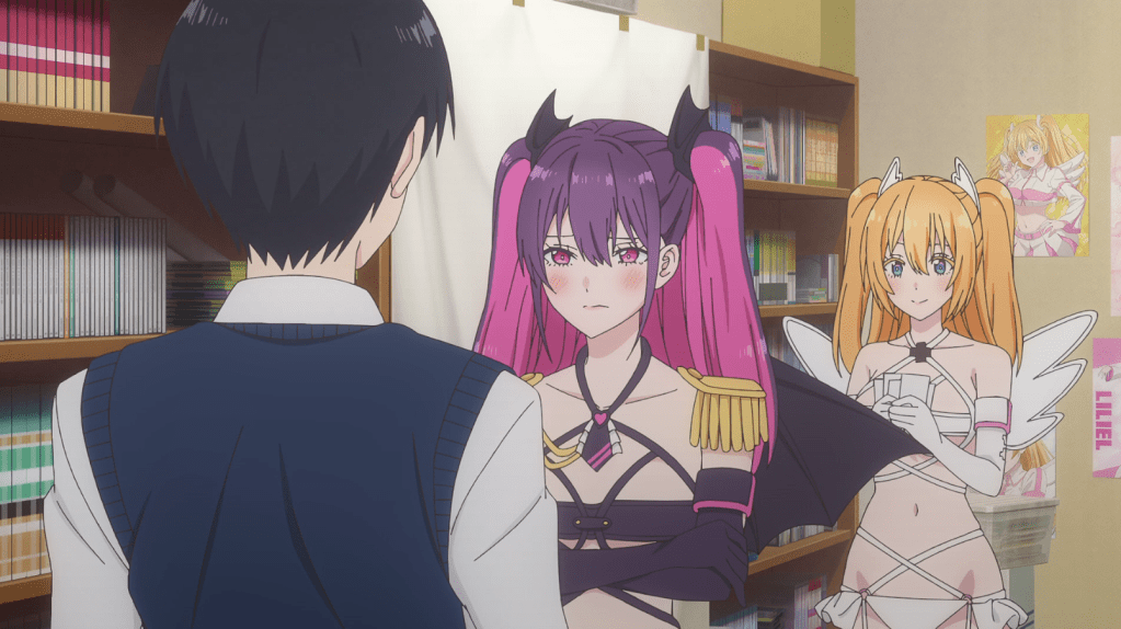 I generally enjoy series about characters who are living out the joy of their fandom, and this series is most certainly that. Sure, it leans a bit heavy into the fan service angle at times, but that doesn’t bother me. All the little tidbits about the nature of cosplaying and cosroms are also interesting, even if this series isn’t as thorough about the former as, say, My Dress-Up Darling (the title it’s clearly emulating) was. The weakest part of the series so far is the childhood friend character who’s the wannabe-romantic rival (although she’s the only one at this point acknowledging that romance is involved), but the teacher who’s a former elite cosplayer who becomes the club sponsor is more promising. Not a great series, and it has had its occasional artistic failings (the screen shot comes from one of its weakest points), but it is involving and entertaining enough that I’ll certainly continue with it. It also has one of the season’s better EDs.
