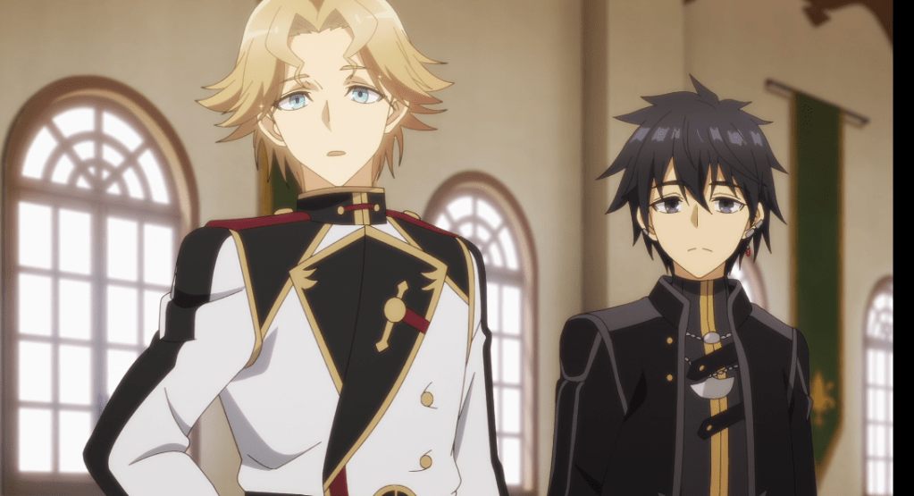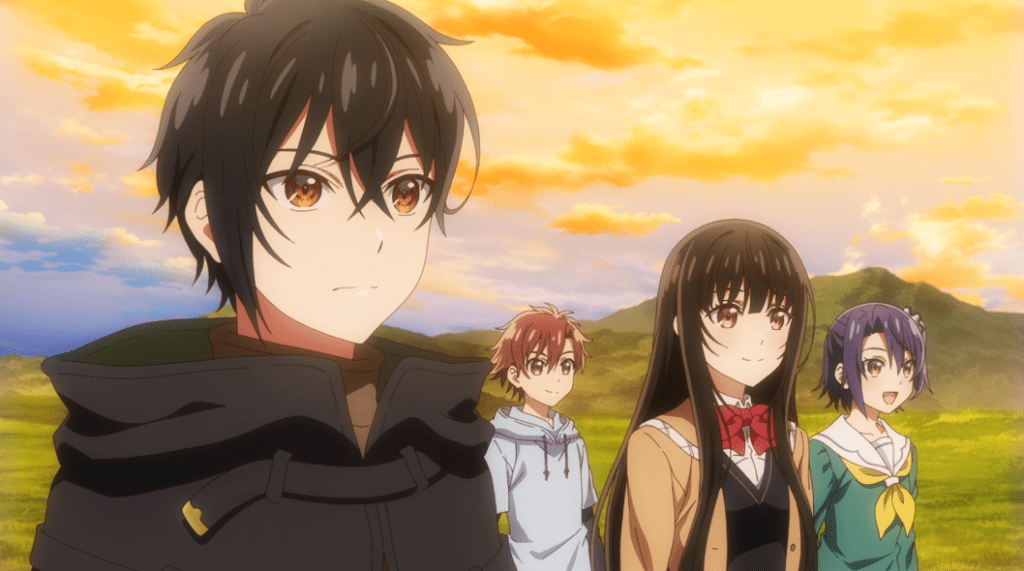 The first season, in 2021, ended with truncated scenes involving protagonist Kirito Haruto/Rio encountering a few Japanese who had just been transported to his new world by pillars of light, including his former love Miharu. This season starts with the full version of those scenes, including the confirmation that Aki (who appeared very briefly at the beginning of s1) is the biological sister Haruto had whom he never saw again after his parents’ divorce. The new trio meets Aisha and Celia, the possibility that their arrival might have something to do with an old legend about the arrival of six heroes (which is supposed to be heralded by the kinds of pillars of light seen at the end of last season) is raised, and Celia is now dressed in a loaned track suit, but that’s about it. In other words, this episode is more finishing out what started at the end of last season than advancing the story.