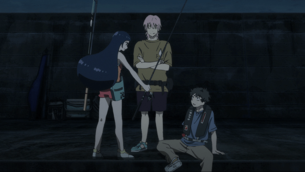 How anime can take even a mundane topic and make it interesting really is remarkable. That’s definitely the case for this original series, which has a seriously down-on-his-luck college student being rescued by a group of angler friends when he falls off a bridge while fleeing from apparent loan sharks. They can’t take him home right away, since they were boating out to a breakwater to fish, so he winds up being convinced to try fishing as something to do while waiting. Though it hasn’t been a life-altering experience yet, protagonist Tsunehiro does seem to find a connection to the struggle to live inherent in fishing, since he may not have long to live himself. (It’s implied that he has a brain tumor.)
