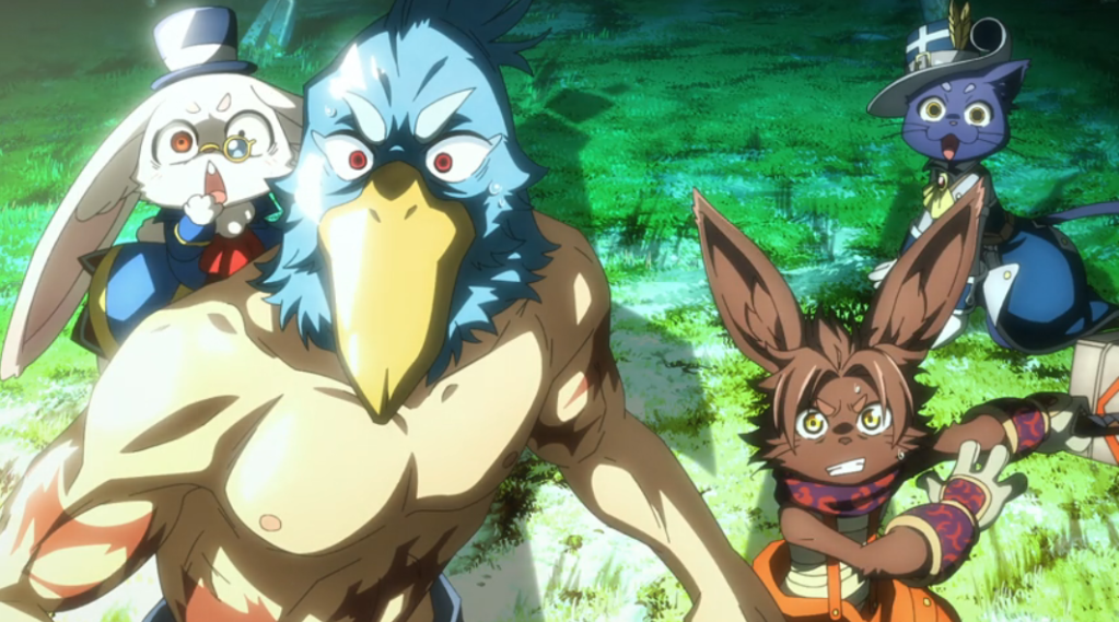 Non-isekai fantasy settings which still use RPG-like mechanics are practically the norm in anime and associated media these days, and “someone who seems weak but really isn’t” is a more common theme now than it ever has been. This series uses both, but at least mixes in some twists. Noel is more nakedly ambitious and calculating than the norm for protagonists in this situation, and that’s somewhat refreshing, as is the angle of applying business principles and endorsements to adventuring. The series isn’t subtle on the symbolism it employs, either, or shy about using heavy musical themes for dramatic moments. However, it does nothing visually impressive beyond the massive axe heads wielded by two different characters and has yet to show anything on the storytelling or characterization fronts that’s boldly different. I’ll probably give it another episode or two to prove itself, but so far it looks like one of the season’s mid-range offerings at best.