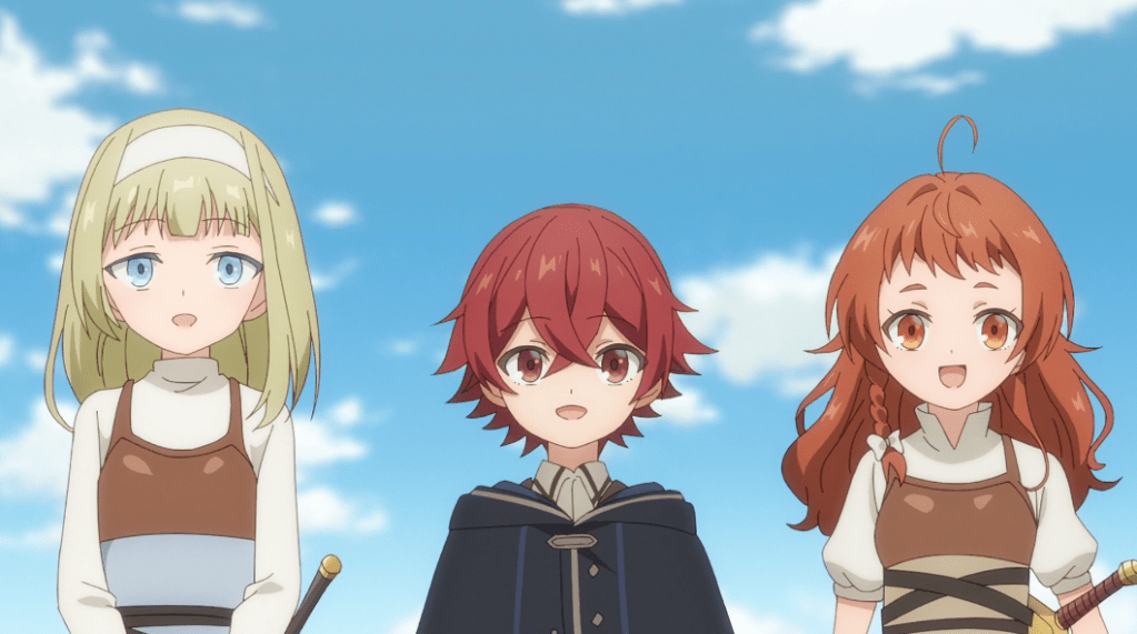 Characterization is more of a mixed bag but leans towards the positive overall. Shion carries the series as a boy (he ages up to 13 by the end of the season) whose obsession with developing magic sometimes leads him into somewhat goofy mannerisms but never keeps him from caring deeply about others; nothing dramatically different from other isekai protagonists, but a well-realized balance nonetheless. Supporting cast quality varies more; Marie has been accused of a devotion to her little brother that borders on incestuous, but that’s over-reading her relationship to Shion. She seems to see herself more as Shion’s champion. By contrast, the writing seems not to know what to do with Rose; she’s underused, even though she can also use at least basic magic and becomes a fledgling adventurer alongside Marie and Shion. Some supporting characters who appear later on are more stereotypical, even bordering on cartoonish to a tonally dissonant extent; this is the series’ biggest flaw, as it otherwise takes itself generally seriously. The series does get a plus for having Shion’s parents both present and actively involved, and a smith who’s a friend of Shion’s father, and helps Shion with item creation, is easily the best-developed and most likable of the adult characters.
