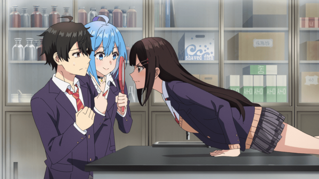 In this light novel adaptation, shy Yu loves to make accessories based on flowers but had no talent for selling them. During his middle school years, pretty, outgoing Himari glommed onto him and helped him sell his accessories, and the two became friends. Two years later in high school, they’re still best friends, though Himari insists that there’s nothing romantic about it. (She claims to not understand romance, as she attributes both dating and dumping would-be paramours in the past to boredom.) That insistence may soon be put to the test, as another girl who also seems to understand what Himari likes about Yu (i.e., his focus on and passion for his creations) has come into the picture.