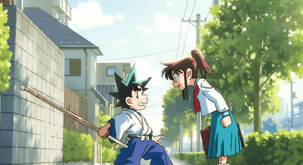 Kaiba has been raised in a jungle to be a samurai, but chance brings him and his father back to Japan, where they encounter an old associate of Kaiba’s father and his teen daughter Sayaka. Kaiba’s never seen girls before, and has no common sense at all about life outside of the jungle and fighting, so all kinds of misbehavior go on before Kaiba encounters his nemesis in the form of the kendo champion of Sayaka’s school.