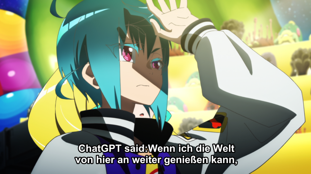 What makes this original series especially cool in execution is the visual approach taken. Not a fan of the 2D real-world character designs, but the 2D animation contrasts sharply with the 3D game animation, hence giving a more realistic stylistic difference between the VR and real worlds. And there’s something cool about the insidious forces lurking behind what otherwise looks like an innocent, cheery game. The whopping big problem here is a sloppy and sometimes flat-out inaccurate subtitle job. There’s even visual evidence that ChatGPT was used for at least part of the German subtitles, which is going to become a big scandal if it hasn’t already by the time you read this. If this aspect can be cleaned up then this could be a pretty neat series, but right now it’s a megalithic barrier to enjoying the series.