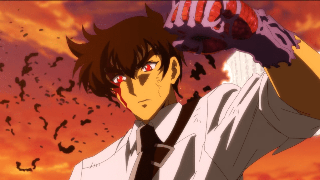 Shiki is a teenage gun nut and troublemaker who lives with his adoptive father, whom Shiki knows only as a liquor store owner/operator. One day after getting expelled from his most recent school, he learns the truth: he actually has Oni blood, and there’s an organization of individuals descended from the legendary oni hunter Momotaro, and one of them is set on killing him before he awakens – and oh yes, his father is a retired member of that organization, too, one dead-set (rather literally, it turns out) on giving him a normal life. Ironically, Shiki awakens to his blood-based powers as a result of a Momotaro agent coming after him, but there’s also apparently a secret organization which fosters young oni, and Shiki looks primed to be joining a groups of oni-in-training of similar age.