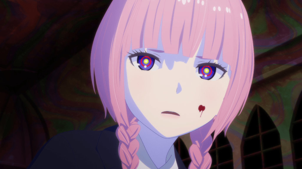 In a story sense, the 14.5 minute episode is more straightforward. Lua is a Saintess Candidate, but her healing powers have a twist: she has to take the injuries upon herself, then heal them. She’s still fairly powerful this way, but things go awry when she risks her life to save a knight captain she’s admired when he is mauled by a monster. She can’t heal herself before collapsing and wakes up a month later to find out that her supposed friend Arianne has done more than just claim credit and romance the captain: she’s dragged Lua’s reputation through the mud to discredit her as well, then laughs at lua over how she’s toyed with her when Lua confronts Arianne about it. That pushes Lua to use an aspect to her power that she’s always held back before: the ability to transfer injuries to others as well. And someone seems amused by this. . .