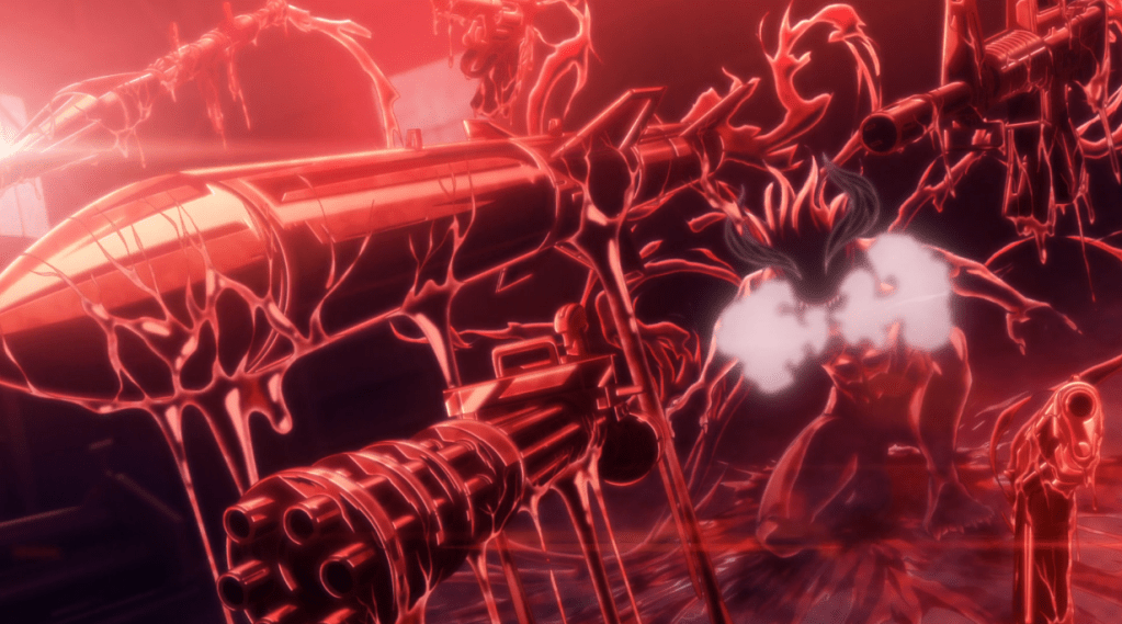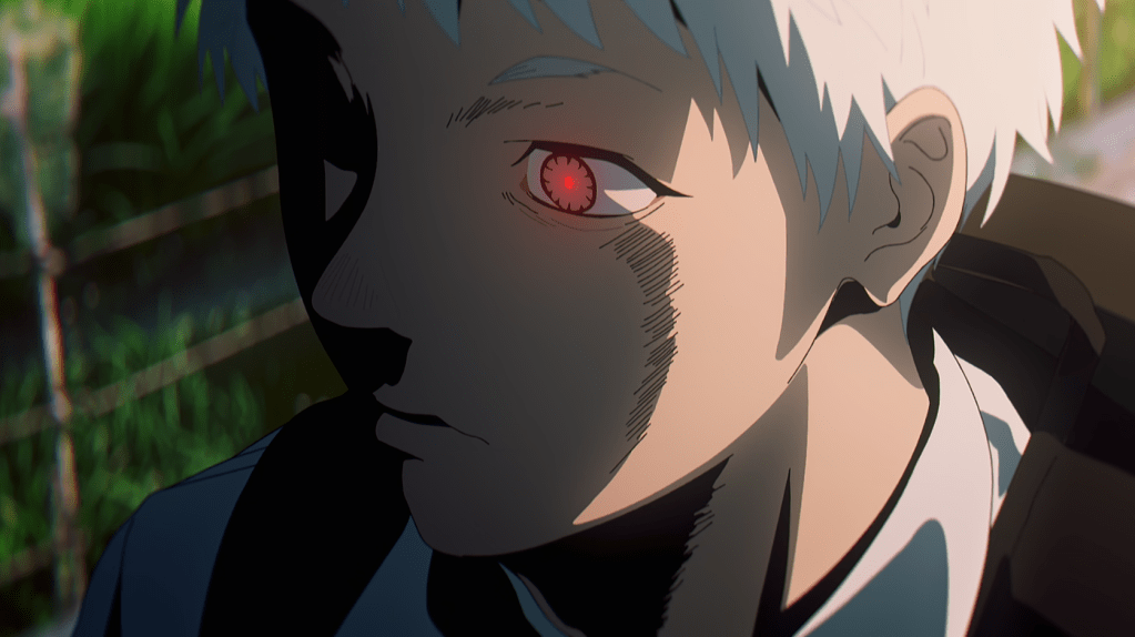 Boy, this one wasn’t on my radar at all, but it is now. Every bit of this opening episode – every characterization, action, and story beat – is bog-standard supernatural shonen action set-up, and the closer (which I assume is going to be the regular OP) doesn’t suggest anything different. What separates this one from the crowd, though, is its sharp visual production. Action animation, while not quite top-tier, is decidedly above-average in allowing for dynamic movement in fight scenes, and it makes impressive use of color and design in creating spectacles like the one shown in the screenshot. (It has to be seen on a large screen to be fully appreciated.) Shiki using his oni power to create guns and even a missile is also, frankly, quite cool. Have no idea if this one is going to amount to anything more than a standard shonen action, but picking up one such title for this season isn’t so bad.