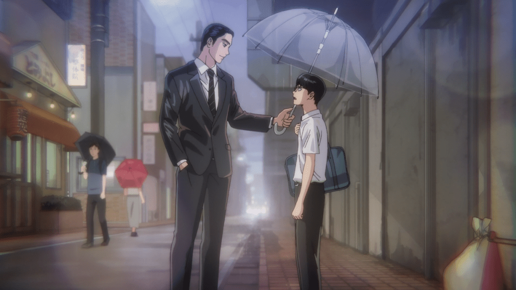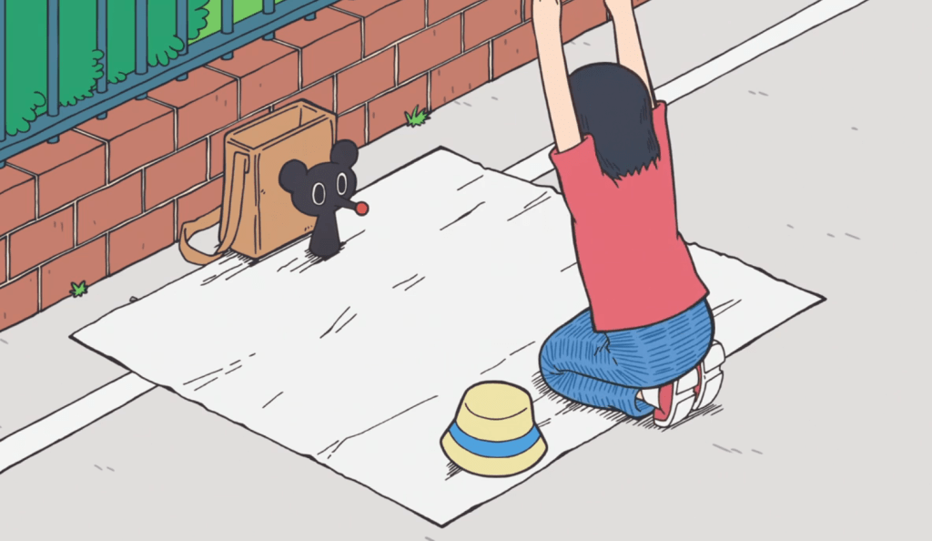 Director Shinya Iino is much better-known for directing Dr. Stone, but this project being an utterly different animal doesn’t hold him back one bit. While it would be a distraction in just about any other title, the rough, sometimes ugly artistry and animation fits the title all too well, and the dichotomy between cutesy mascot creature antics more fitting for light children’s fare and Shizuka’s grim circumstances is every bit as jarring as it should be. This extended-length (37 minute) animation isn’t each to watch, but it’s worth watching.