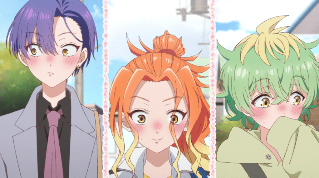 15-year-old Hana Tabata dreams of the kind of romance found in shojo manga but doesn’t expect that she’ll ever experience it, since she’s painfully shy and, by her admission, ugly. (In fairness, her character design is more a plain, somewhat stocky background girl character than outright ugly – unlike Uglymug, Epicfighter – but this isn’t also a case like Maomao or this season’s Betrothed to My Sister’s Ex, where the right clothes and make-up would turn her into a beauty, either.) Contrarily, Classmate Yosuke is exactly the kind of guy who would star as the main male love interest in a shojo manga, and an extrovert as well. Hana becomes alarmed when Yosuke spots her experimenting with using a flower as a hair ornament and expects the worst, but she’s slow to understand that Yosuke is just a decent guy, while he’s slow to understand why she seems so out of sorts around him.