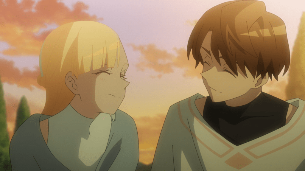The series may be decidedly ordinary (but not bad!) on the visual front and doesn’t do anything ambitious on the characterization or storytelling front; the central Melpheria/Aristide relationship doesn’t significantly change after their formal engagement, and Melpheria’s concerns about being accepted only go so far. There really isn’t much plot in the final few episodes, either, which all involve transporting to Galbraith, introducing the people who will be around Melpheria going forward, and of course going on foodie binges. Action scenes are mostly limited to one long chase sequence by monster birds, too. The one slight bit of intrigue is that Aristide recognizes what Melpheria is completely unaware of herself: her talents and discoveries could be very powerful and dangerous if noticed and exploited by the wrong people, so he’s determined to make sure her efforts are used only for peaceful means. Delving into that could make any sequel which comes along (one hasn’t been announced yet) more interesting. Still, I don’t mind the focus on the mundane aspects of what she’s doing, and these two still make one of the season’s cutest couples. I’d absolutely watch more.