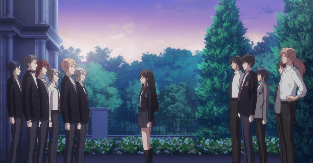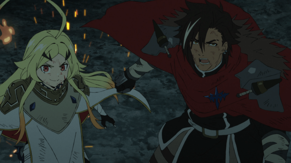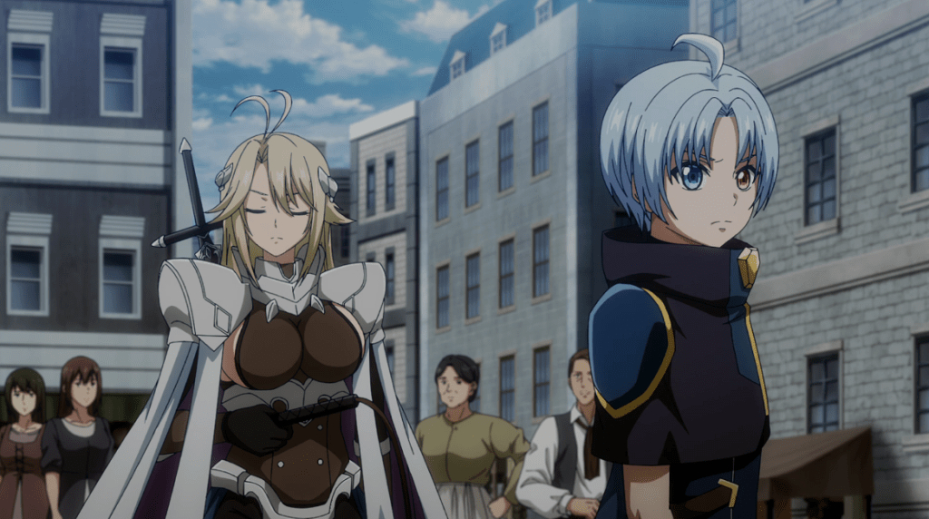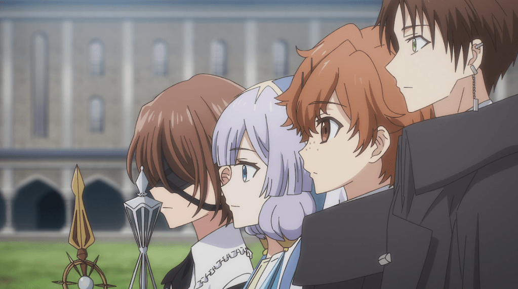 While I perfectly understand how difficult it is to get past the protagonist’s name (Noah Ararat), this has proved to be a halfway decent isekai reincarnation story so far. Noah takes a pragmatic and sometimes ruthless approach not too dissimilar from Tanya in Saga of Tanya the Evil, though he does show at least some compassion. And while he does have some personal power, he advances himself more through administrative acumen and insight. Still, the series can’t fully escape power fantasy trappings, such as his corps of sexy maids and bodyguards. The series is graced by the season’s second-best closing song (after only Frieren‘s), though I wish the series would do something with the character who sings it. (She’s only appeared in regular content so far as Noah’s favorite live performer, and I don’t think she’s had a word of non-sung dialog.)