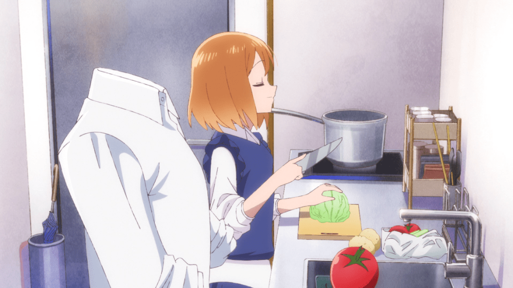 Though it definitely has its share of light-hearted moments, this series is closer to being a pure romance than a romantic comedy, and it’s a pure, sweet delight in that regard. I love the way it just casually populates a modern society with all sorts of non-human races (Akira isn’t even the only invisible person to appear), and vignettes in a couple of episodes even explore that more deeply; the dark elf in an elf couple has curse powers that he’s concerned could influence a potential child, and the catperson on Akira’s staff worries over finding clothing that works well with the patterns on her fur. The series is also quite thoughtful and specific about portraying the adaptations for Shizuka’s blindness and its technical merits, while pretty plain overall, do a fantastic job of maintain design consistency around Akira being invisible. Of course, the core attraction of the series is the gradually developing Akira/Shizuka romance. It’s one of the season’s better low-key views.