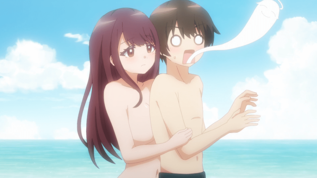 This one clocks in at six minutes and, at least so far, is only at an ecchi rather than hentai level (i.e., some nudity but no sex). It does actually have a bit of story to it, and Marika is actually trying to flirt, so this looks like just a condensed version of a standard ecchi romcom. Unclear yet whether classmates shown earlier in the episode will join busty Marika in the ecchi content, but even if they don’t, you could probably do worse for ecchi content.