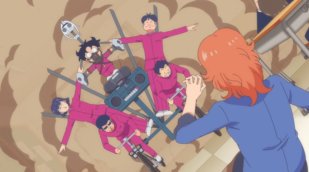 In this reboot of a long-running mid-80s manga adaptation, Yui Kawa is a new transfer student in class 3-10 at Ichio Junior High School. She’s looking to make fun memories, and she’s certainly come to the right place, because the school is populated with assorted groups of weirdos. The group in her class is the Kimengumi, an energetic group of five boys devoted to adding flavor to the world, but there are numerous others afoot, too, including pretty boys, athletic groups, and delinquent gangs. To the surprise of Yui’s initial female friend, Yui gleefully gets caught up in their antics. But just when junior high is winding down and she’s prepared to go to a different high school than the gangs, Yui discovers that they won’t be separated after all.