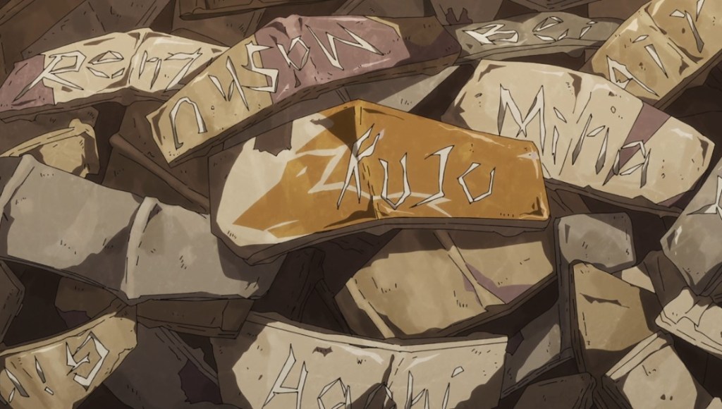 Almost lost in all of this is the episode’s most poignant scene, and the one which most speaks to why Shin has the nickname that he does: the chest containing scraps of Juggernaut armor, each etched with the name of a former comrade who (presumably) died in battle. That is the most harrowing reminder of what the stakes are for the 86.