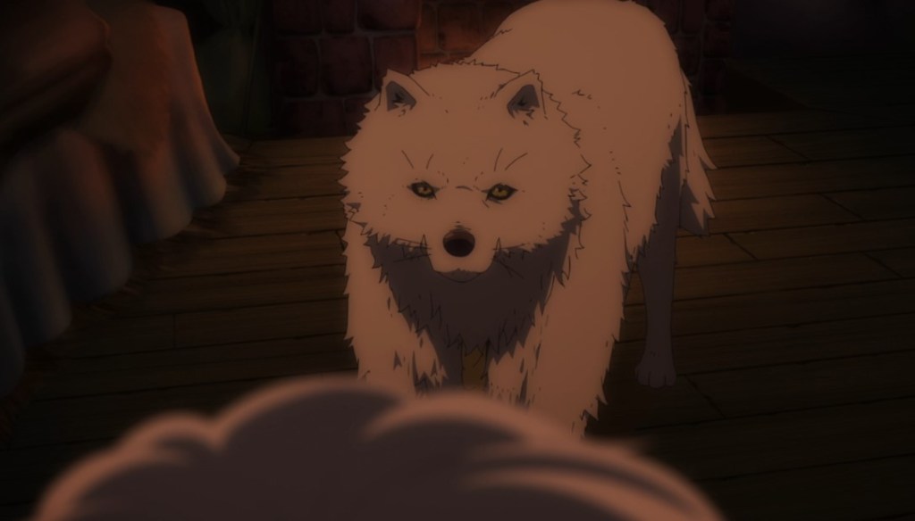 This was one of the most-anticipated titles going into this season, primarily because it is based on a manga by Yoshitoki Ōima, the creator behind the much-lauded A Silent Voice manga and anime movie. (Incidentally, I highly recommend both the manga and movie versions of that title, though its focus on the long-term impact of bullying may make it a difficult view/read for some.) While the first episode isn’t overwhelming in quality, it lives up to the hype well enough. It tells a poignant tale about an alien observer who takes on the form of a boy’s dead pet wolf and watches him as he struggles valiantly to shed his solo existence out on the tundra. He seeks to pursue the able-bodied folk of his village, who left five years ago with a promise to come back, though they never did. With all of the remaining old folk now having passed, he sets out with the wolf Joaan to follow them.