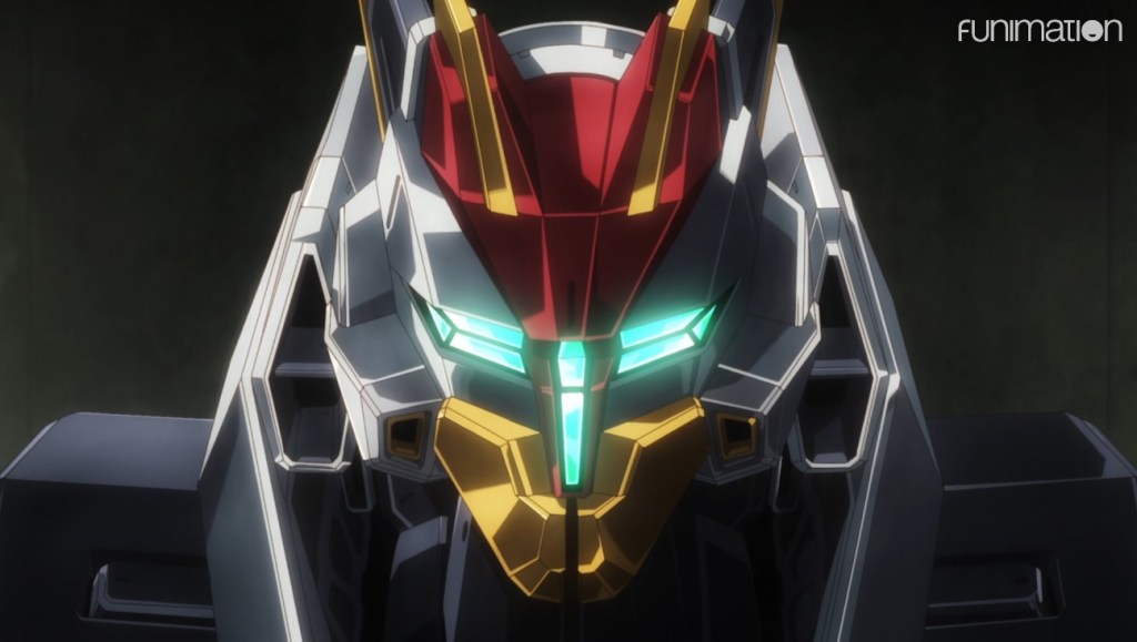 Maybe the biggest surprise so far this season is that the opening episode of this new traditional mecha series succeeds despite having many reasons to be quickly-forgettable. It is very clearly intended to be a vehicle for advertising model kits (toy/hobby company Bandai Spirits is one of the principle names behind it), very little that it does feels fresh, and the situation that Japan is in at the time of the story seems improbable, so it is standing on a shaky foundation. Its initial villain is almost laughably simple in his evil, and the character designs look like leftovers from a card game show aimed at kids.