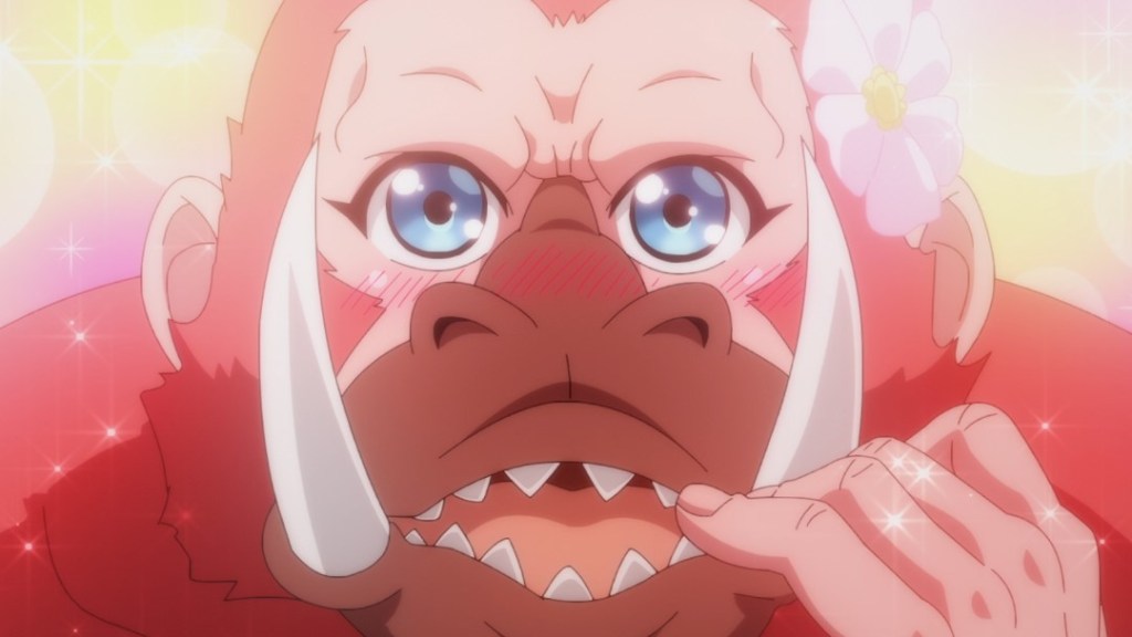 By all rights, this show should absolutely suck. The animation, while hardly down to I’m Standing on 1,000,000 Lives level, is no more than mediocre, human character designs all look completely generic, and the isekai set-up feels like it was pieced together from other random isekai series. The only thing special about it so far is the uber-strong but also potentially lovey-dovey pink gorilla, who intends to marry the main character but will apparently evolve in a gorgeous redhead human girl next episode.