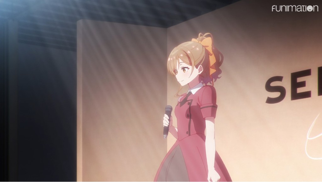 On the surface, this mostly looks like a standard idol show, with the set-up gimmick this time being that the prospective idols are broken down by region and a finalist chosen by region. Who’s going to win from every block except the North Kanto one is painfully obvious, as only one character in each of the other regions is even named, much less given featured attention. That leaves the only suspense at all being in North Kanto, where featured girl Suzune is participating. Will she win out over her close friend in a tight race, or will she have to take an alternate path?